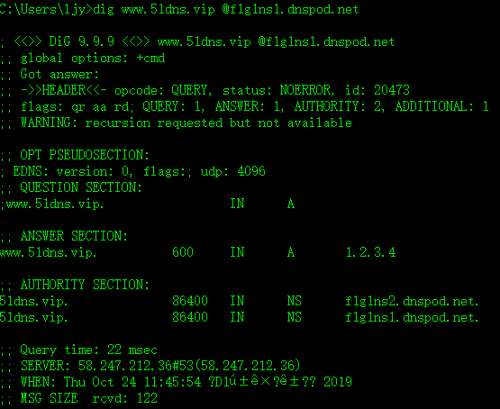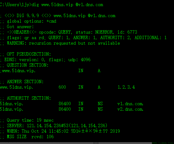 指定上述两个DNS进行查询和分析都是有效的。 如果在我这里暂停一方的分析也没有影响。 另一个DNS仍然有效,这样就可以达到一个如果解析出问题,也能保持解析生效网站正常访问。