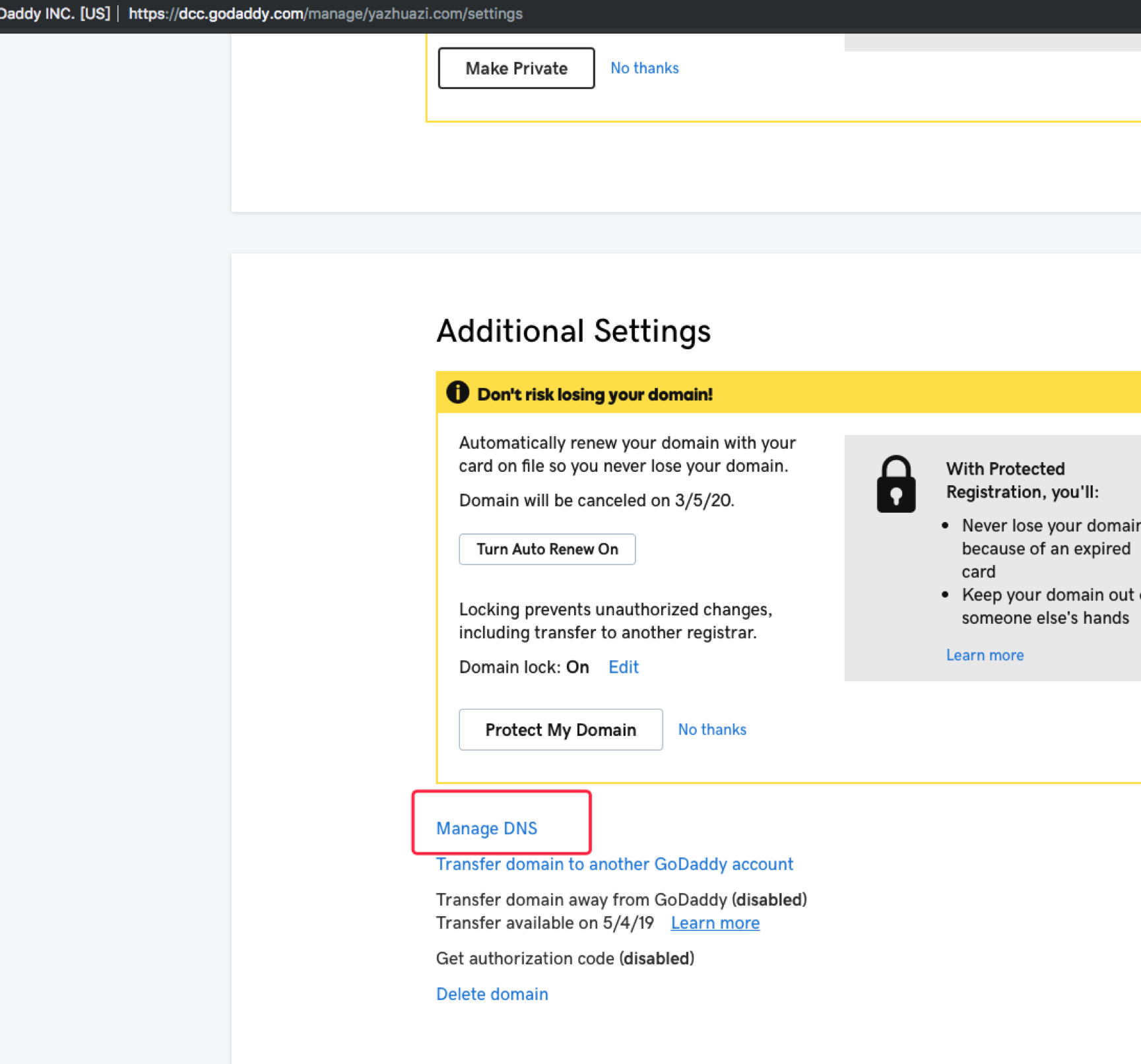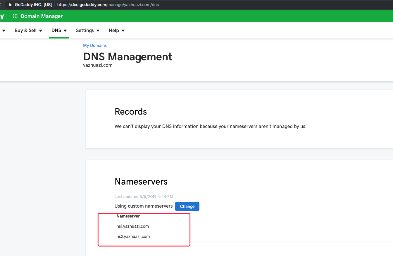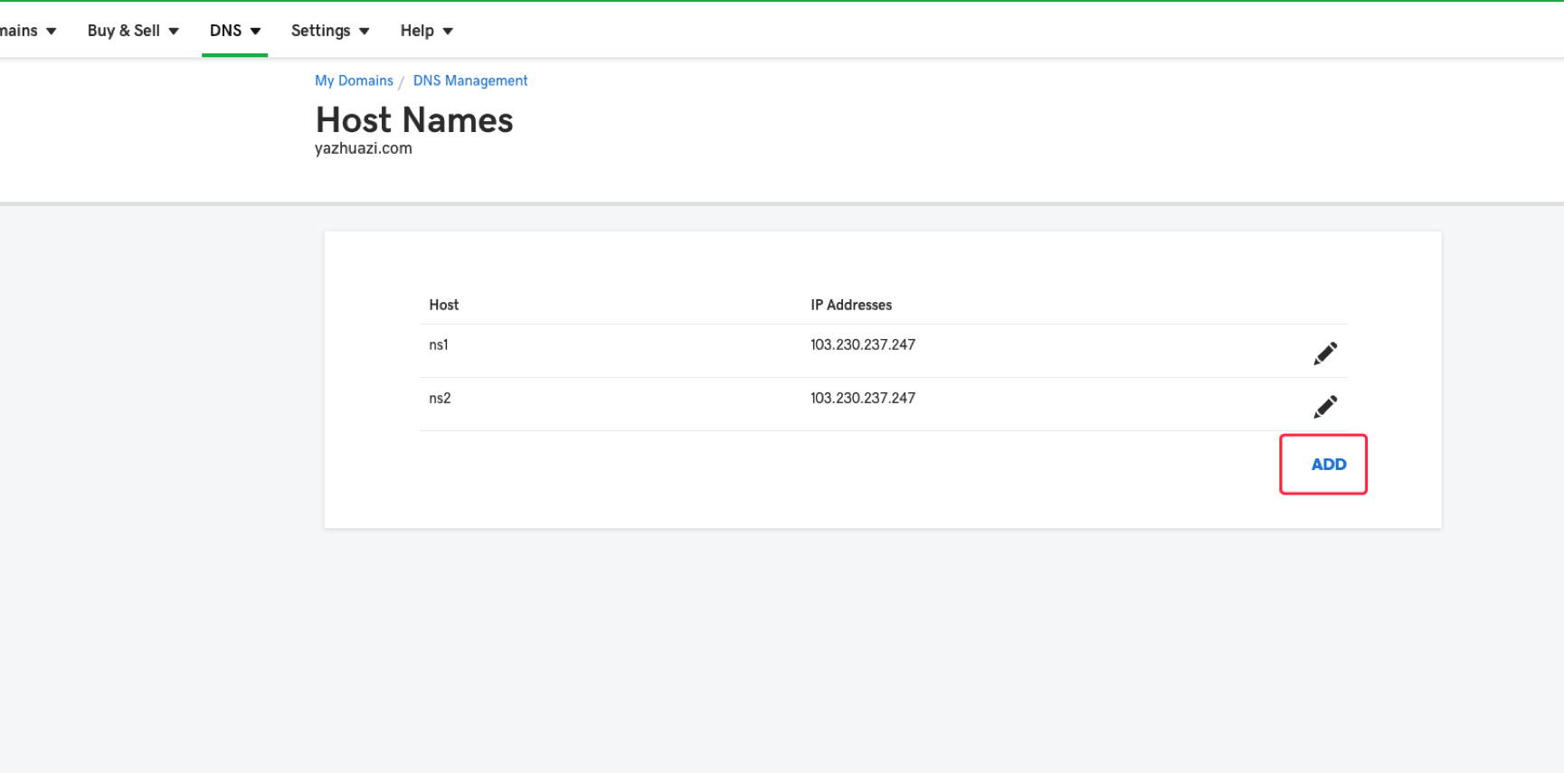有Godaddy的域名yazhuazi.com,我们希望构建DNS域名服务以用于其他域名,如ns1.yazhuazi.com和ns2.yazhuazi.com