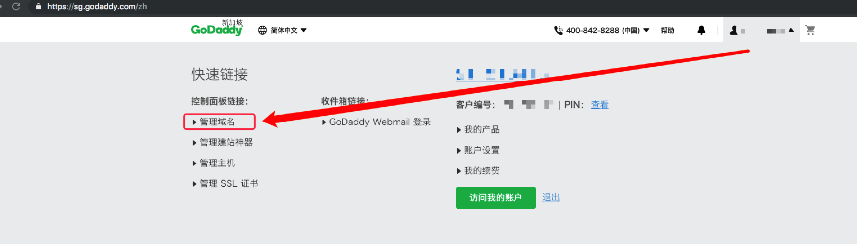 然后,必须登录godaddy帐户。 godaddy支持中文和英语。 建议使用英语。 中文网站是用英语翻译的,翻译得并不准确,容易被误解。