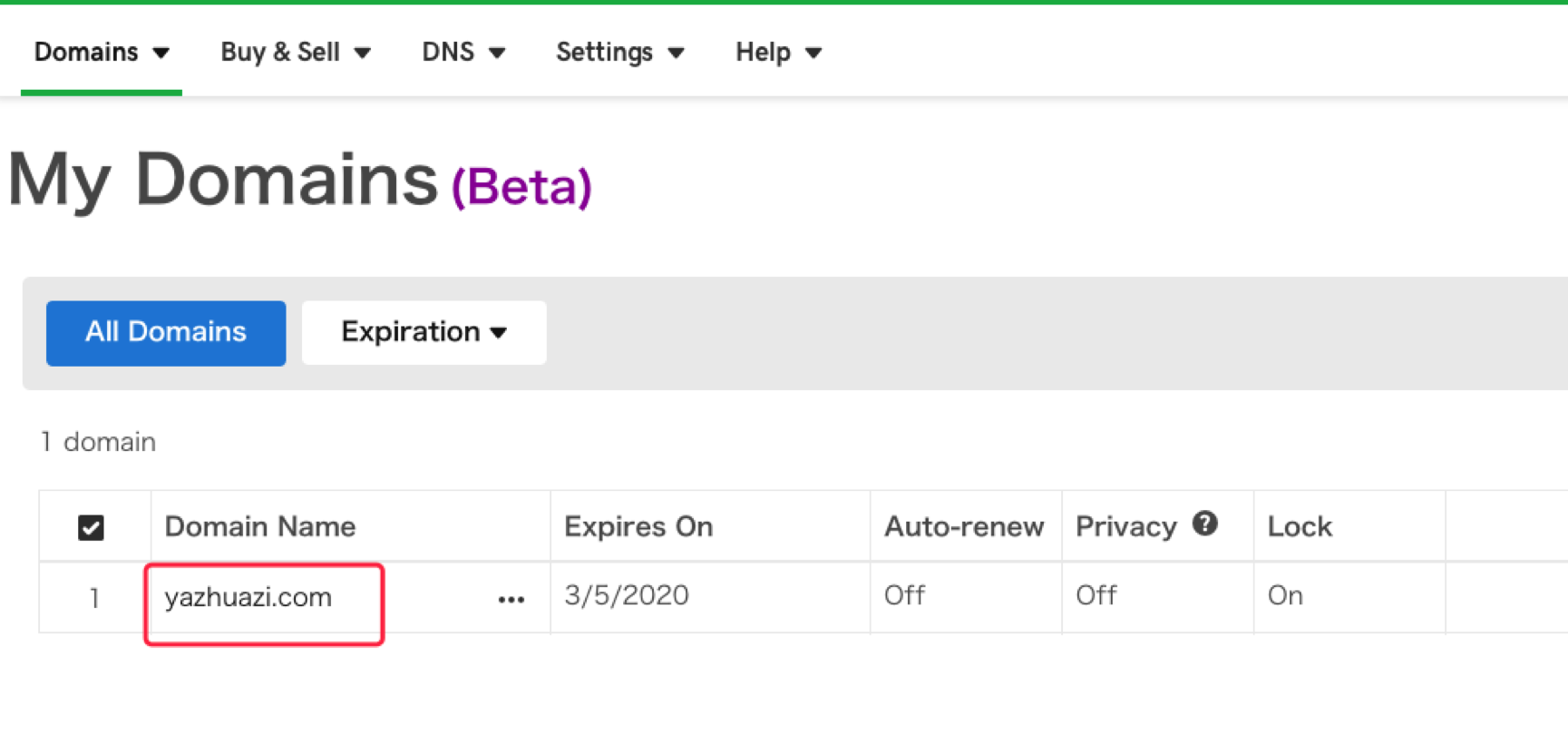 2、单击相应的域名yazhuazi.com以转至要更改域名的“域名设置”页。