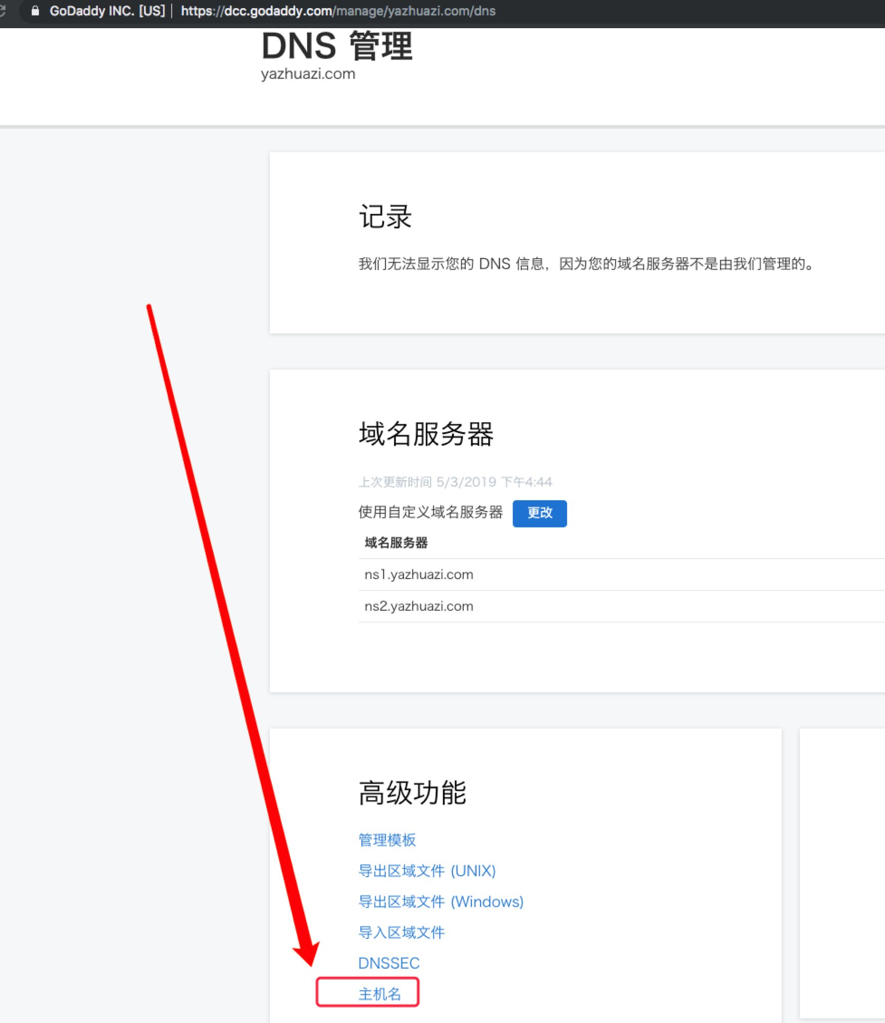 4、将页面拉至底部,找到&";主机名&";,点击进入。