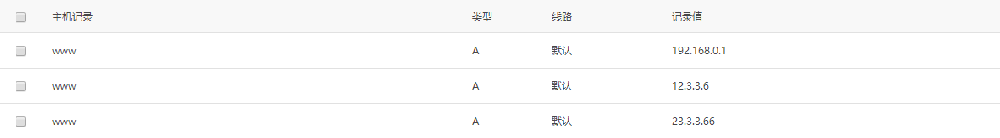 如上图所示,添加多个相同的主机标头并填写不同服务器的IP地址,即可对该域名的www主机标头完成三个负载平衡分析。