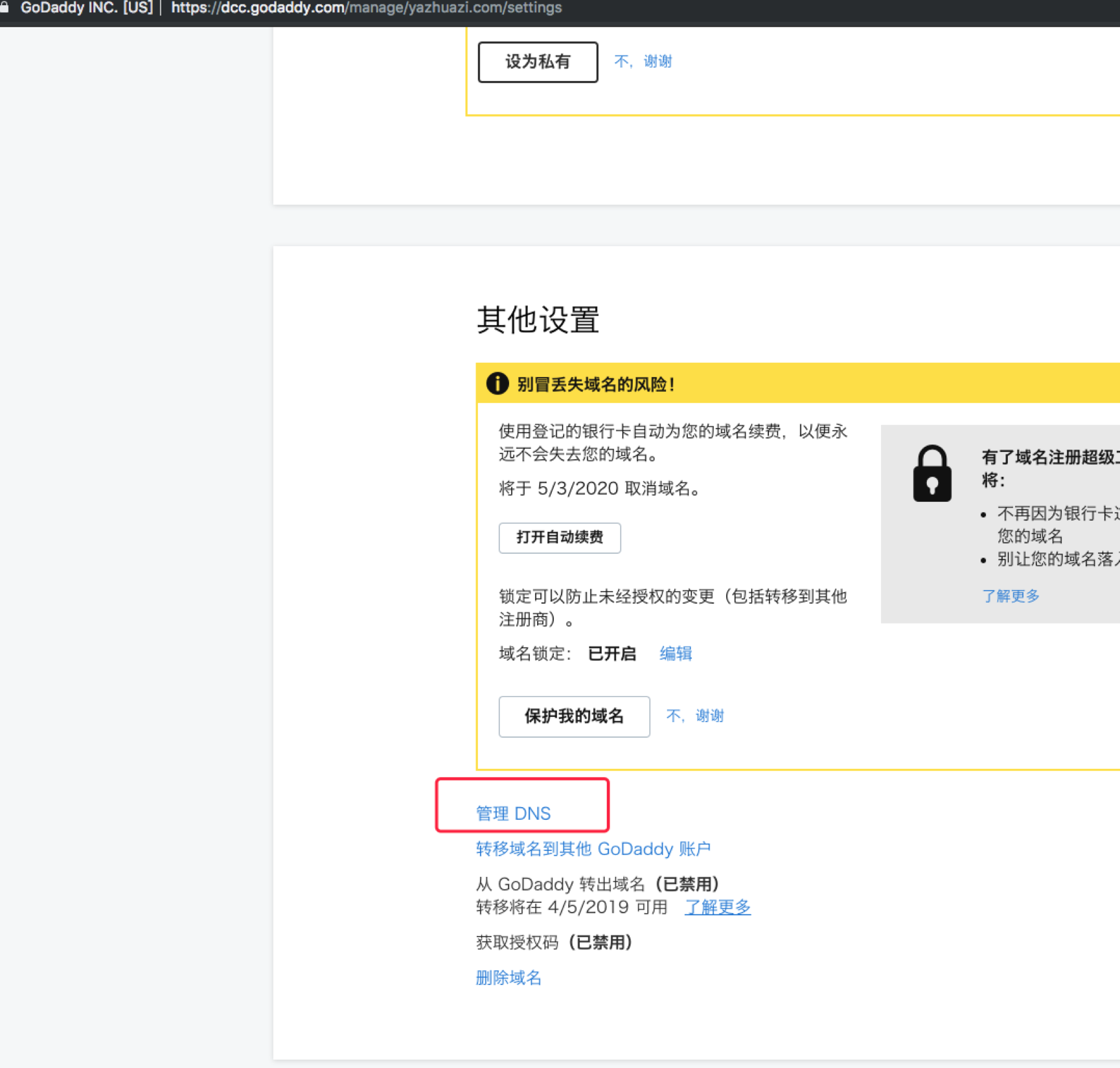 3、拉至底部,找到“DNS管理”,点击进入DNS管理页面。